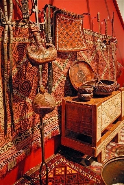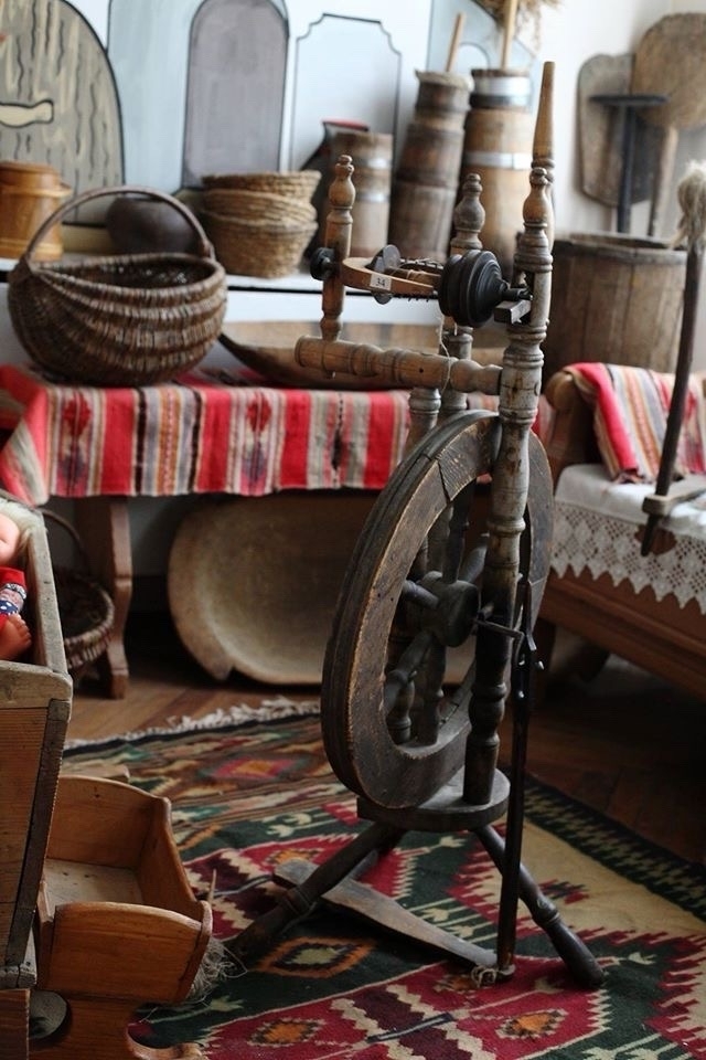 - Предметы народного быта (самовары, подносы, плетеные изделия, деревянная посуда, корзинки, лапти, прялки, ухваты, коврики, дорожки, половики с национальными орнаментами народов России);