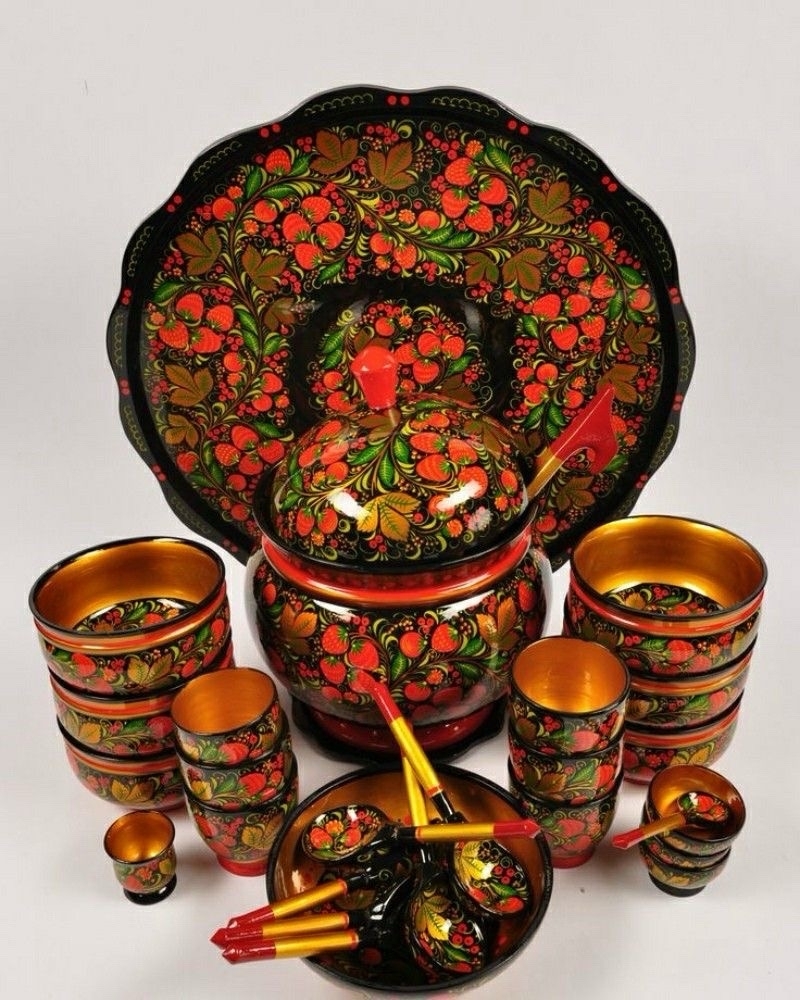 - Изделия народных промыслов: гжель, хохлома, городецкая роспись, жостовская роспись;