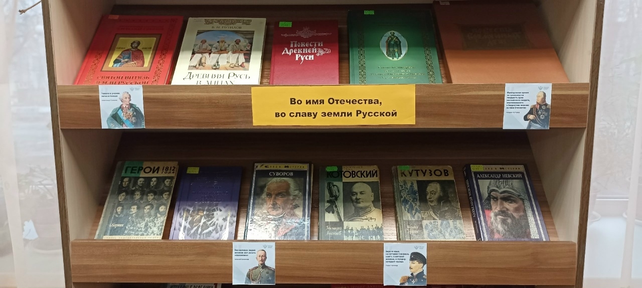Раздел 1: «Во славу земли Отечества, во славу земли Русской». Книги о подвигах героев Древней Руси, царской России и великих полководцах - Александре Невском, Дмитрии Донском, Александре Суворове, Михаиле Кутузове, Федоре Ушакове.