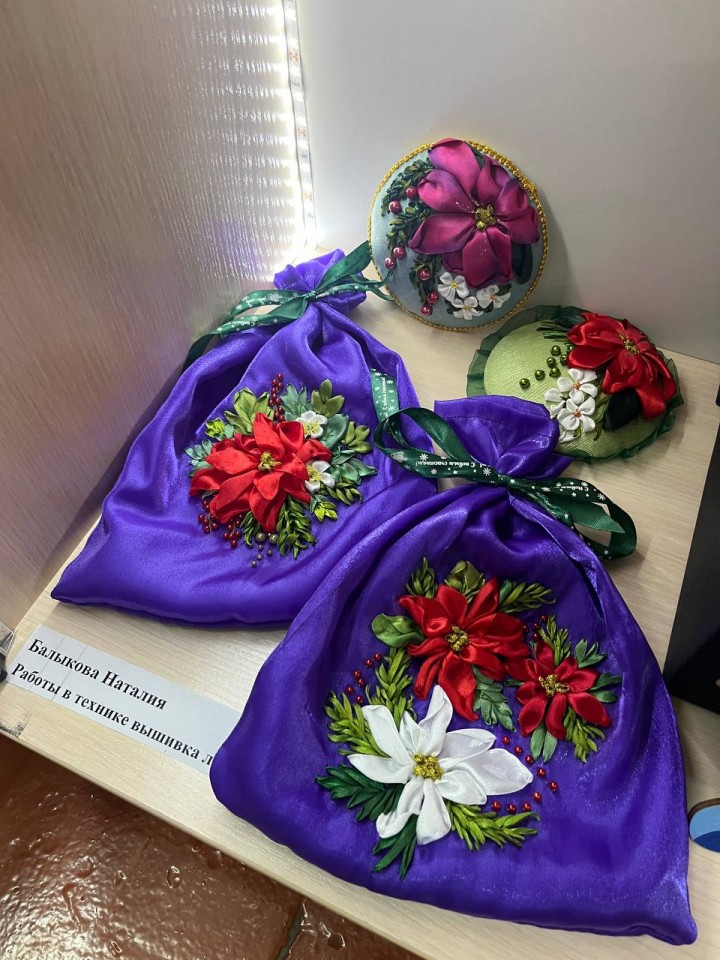 Наталия Балыкова (картины, шары, новогодние мешочки, игольницы, открытки в технике вышивка лентами),