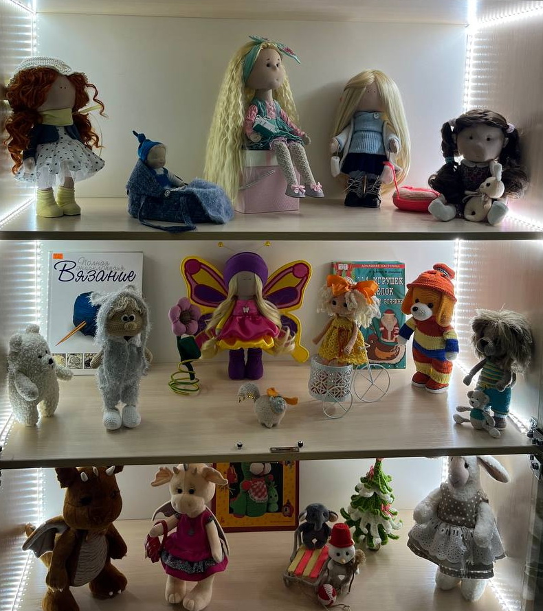 На выставке вы увидите текстильные интерьерные куклы из ткани и забавные, очаровательные вязаные игрушки.