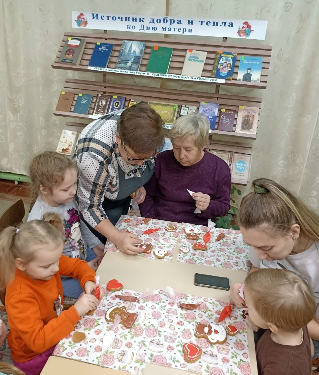 Накануне Дня матери, который в 2025 году отмечается 30 ноября, в библиотечно-социальном отделе прошел замечательный мастер-класс по украшению пряников "Для любимой мамочки".