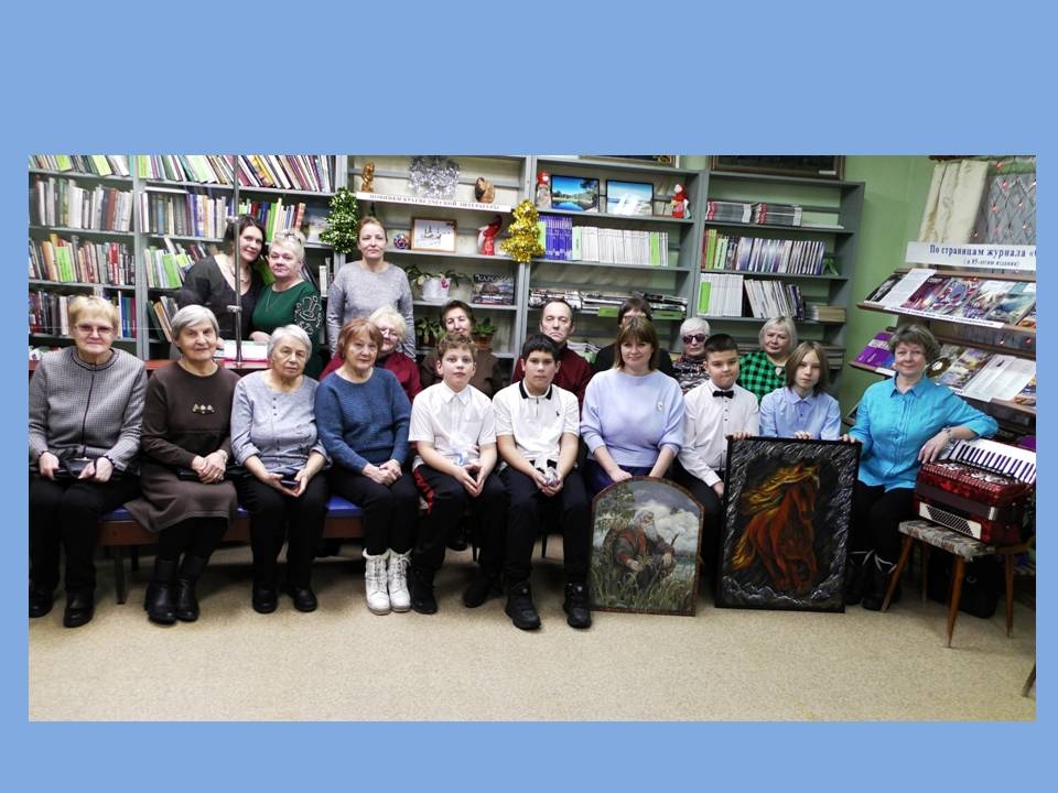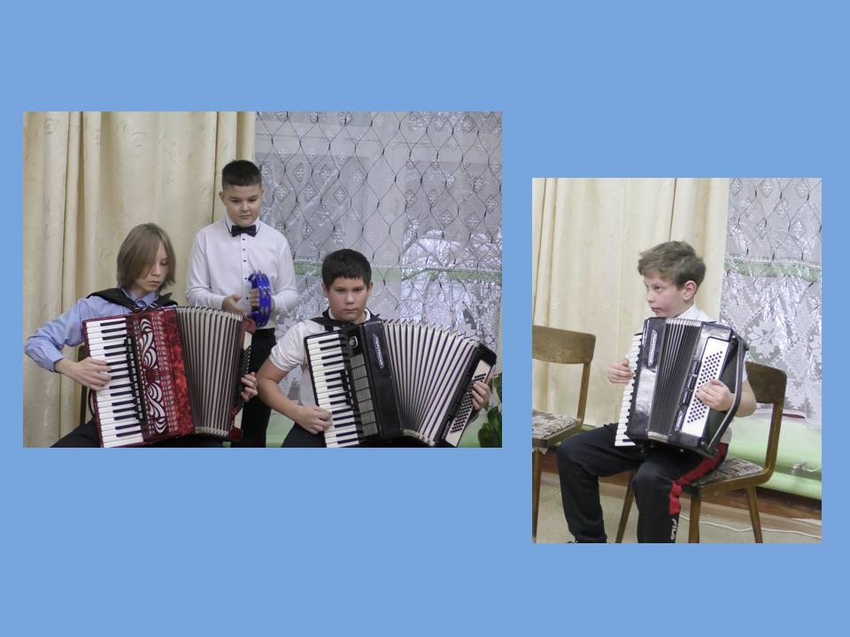 Хочется отметить участие в программе вечера учащихся музыкального отделения Школы искусств. Под руководством Марины Ивановны Дмитриченко юные музыканты открыли встречу. В исполнении аккордеонистов Алексеева Левы и Батенкова Даниила прозвучали «Новогодняя полька» и «Грустный мотив», а трио «Аккордеон плюс» в составе Ванжурова Семена, Примаченко Николая и Батенкова Даниила порадовали публику пьесой «Веселые друзья». Звучание живой музыки является украшением любой встречи.