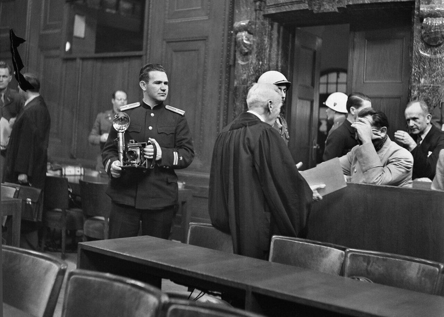 Евгений Халдей во время Нюрнбергского процесса.