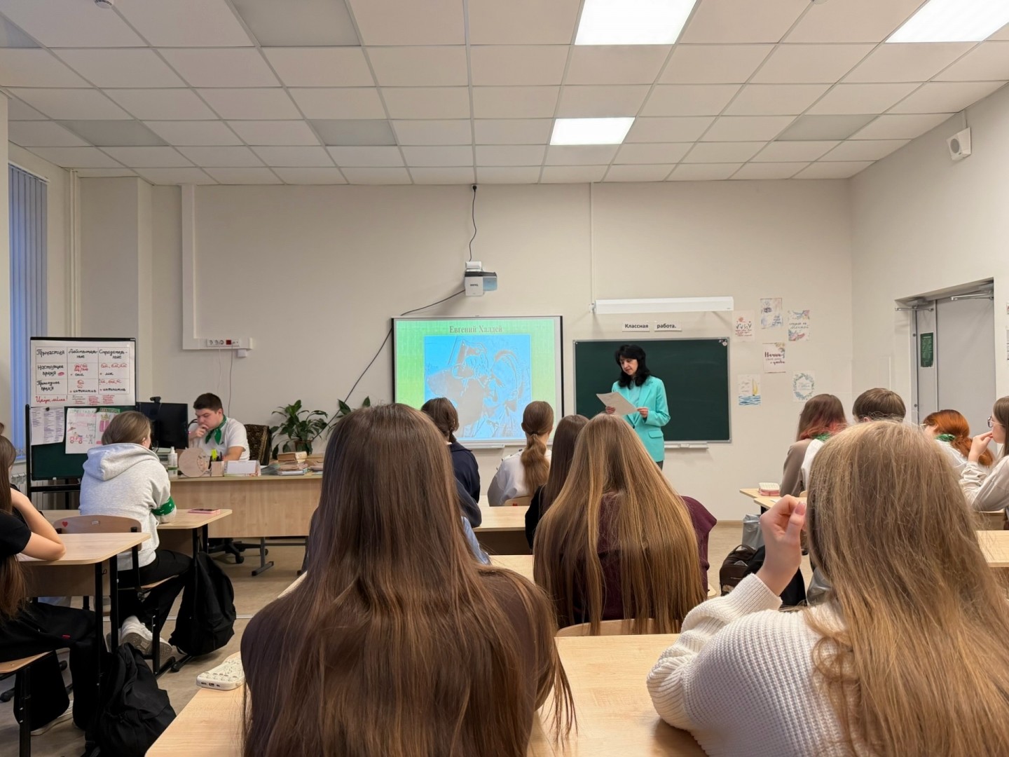 19 февраля 2026 года сотрудник библиотеки Л.П.Бычкова познакомила учащихся 10-г класса МСОШ им.А.Фанягина (классный руководитель А.Л.Шилова) с жизнью и творчеством выдающегося советского фотографа, легендарного военного фотокорреспондента Евгения Халдея, знаменитого уроженца Донецка, который запечатлел водружение Знамени Победы над Рейхстагом. Ребята услышали рассказ о его непростой судьбе, пути от юного фотографа-самоучки до летописца Великой Отечественной войны, познакомились с интересными фактами из жизни, с историями о созданных им в разные годы фотоснимках.