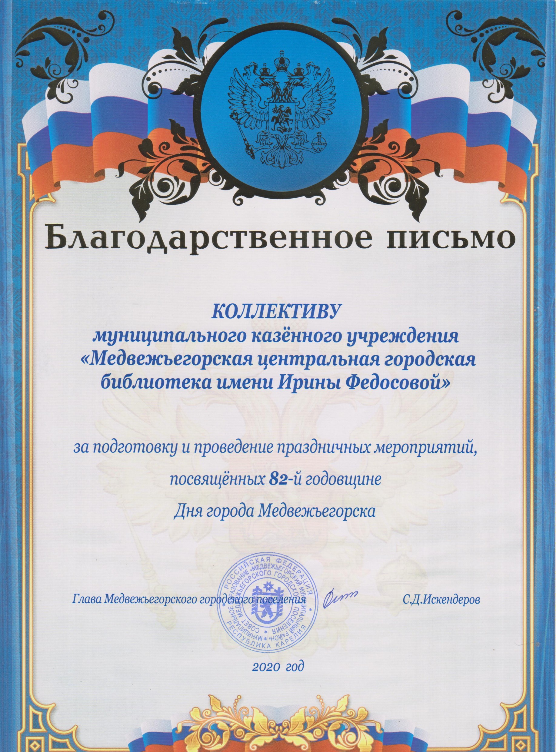 Муниципальное казенное учреждение «Медвежьегорская центральная городская библиотека имени Ирины Федосовой»